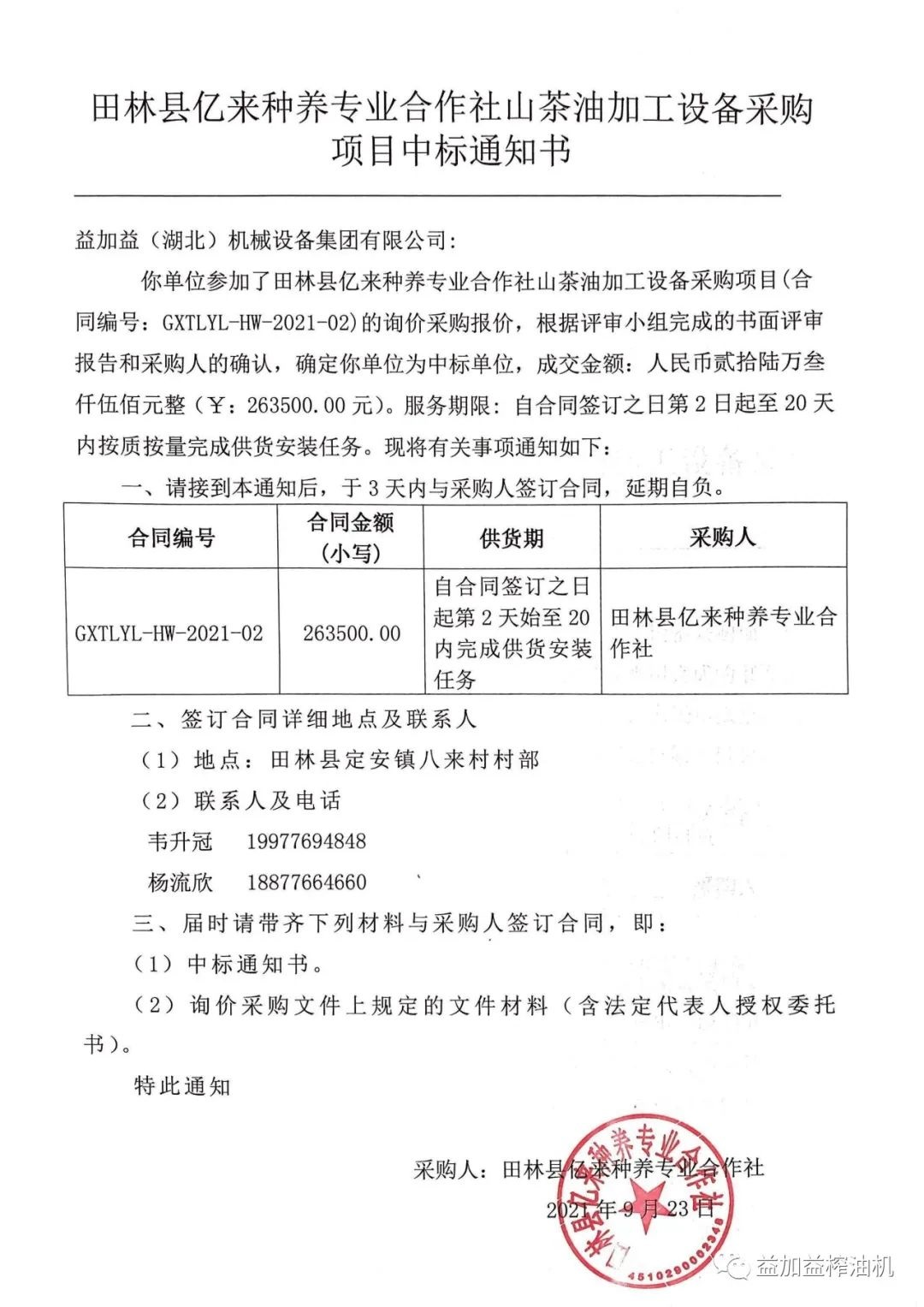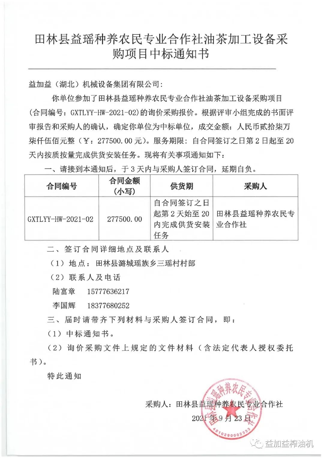 益加益集團(tuán)憑借過(guò)硬的產(chǎn)品質(zhì)量,扎實(shí)高效的工作作風(fēng),卓越的運(yùn)作團(tuán)隊(duì)和良好的企業(yè)信譽(yù),在眾多競(jìng)爭(zhēng)對(duì)手中脫穎而出,連續(xù)中標(biāo)《中華人民共和國(guó)世界銀行貸款廣西貧困片區(qū)農(nóng)村扶貧試點(diǎn)示范項(xiàng)目》中全部11家專業(yè)合作社山茶油加工設(shè)備的招標(biāo)購(gòu)置。
